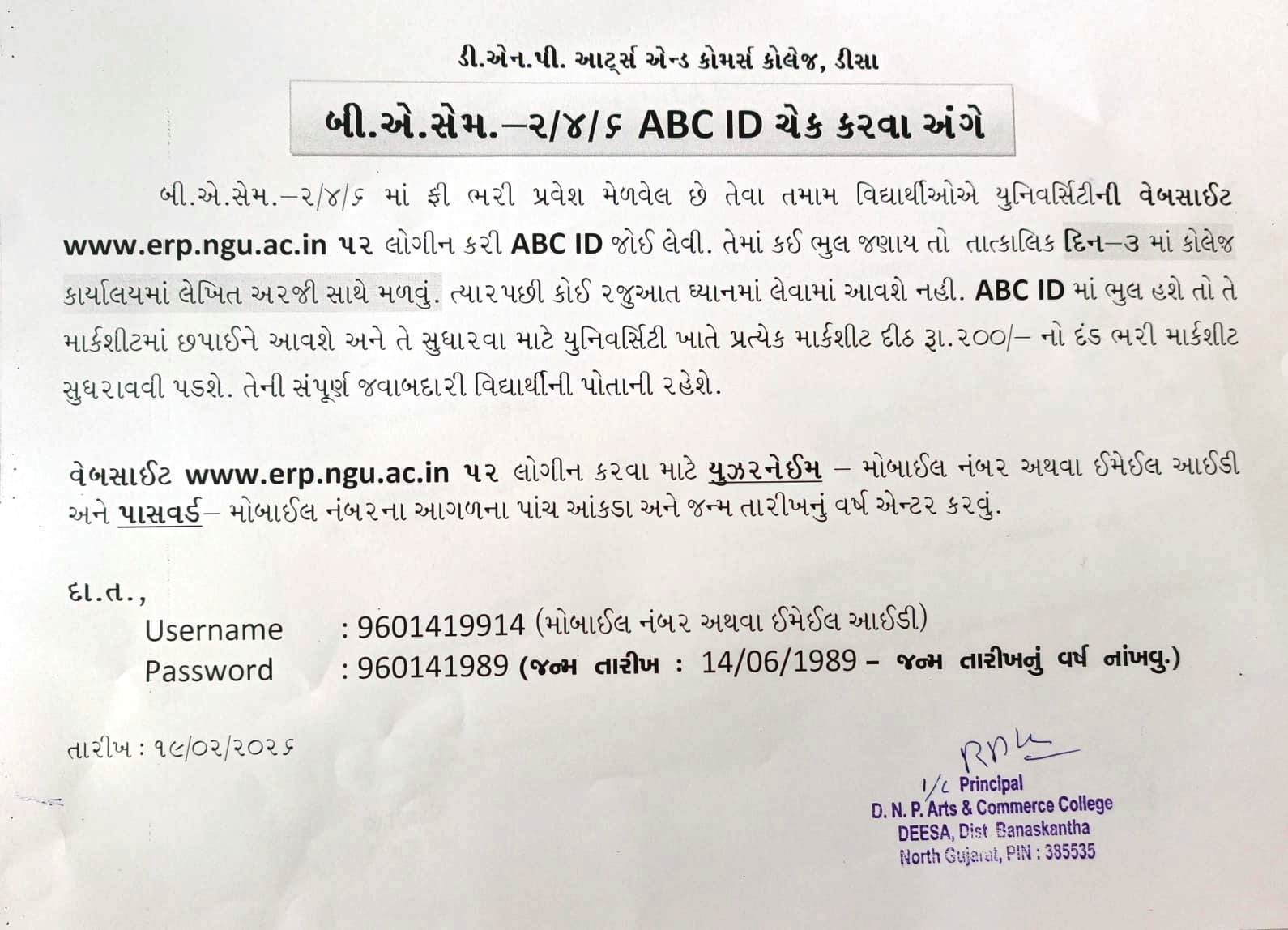 બી.એ. સેમ - ૨/૪/૬ ABC ID ચેક કરવા અંગે