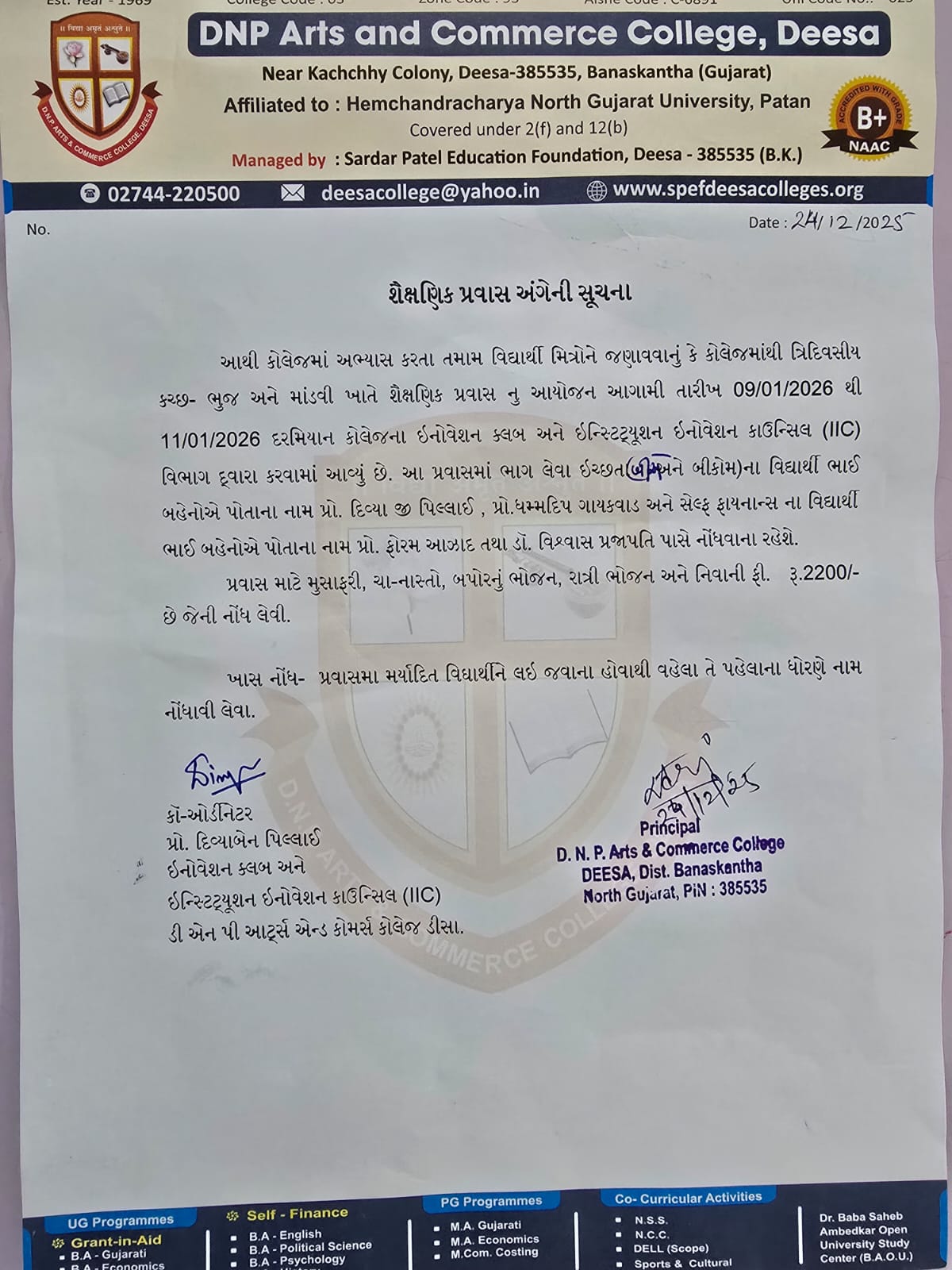 શૈક્ષણિક પ્રવાસ અંગેની સુચના - ૨૦૨૫