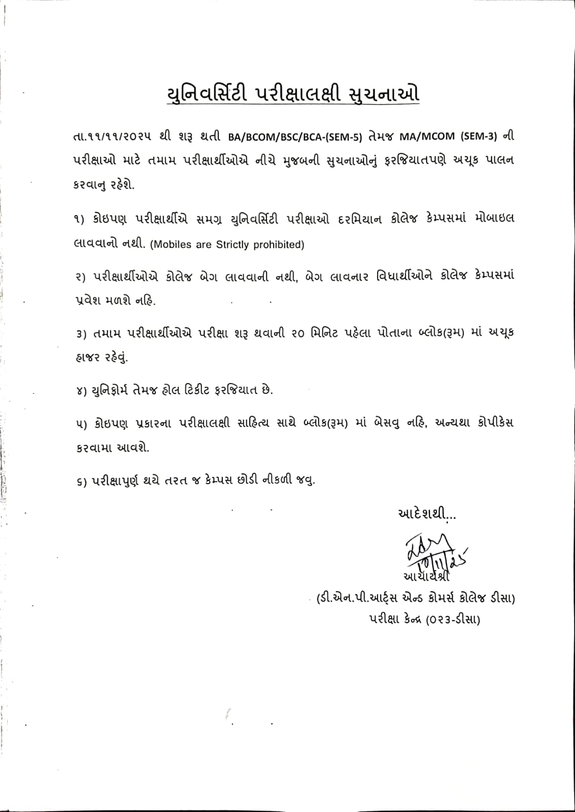 યુનિવર્સિટી પરીક્ષાલક્ષી સૂચનાઓ - ઓક્ટોબર - ૨૦૨૫